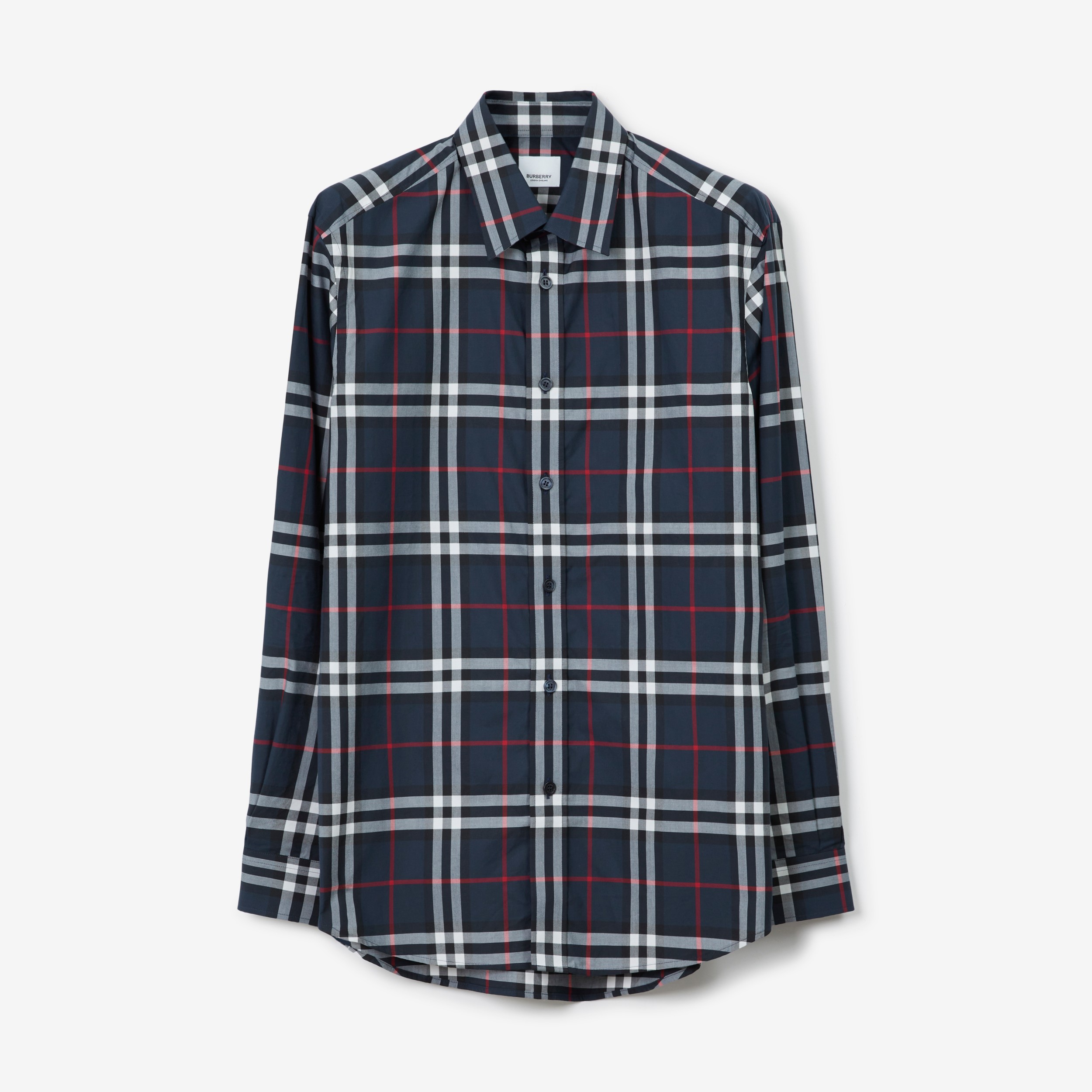 Check Stretch Cotton Shirt in Navy - Men | Burberry® Official