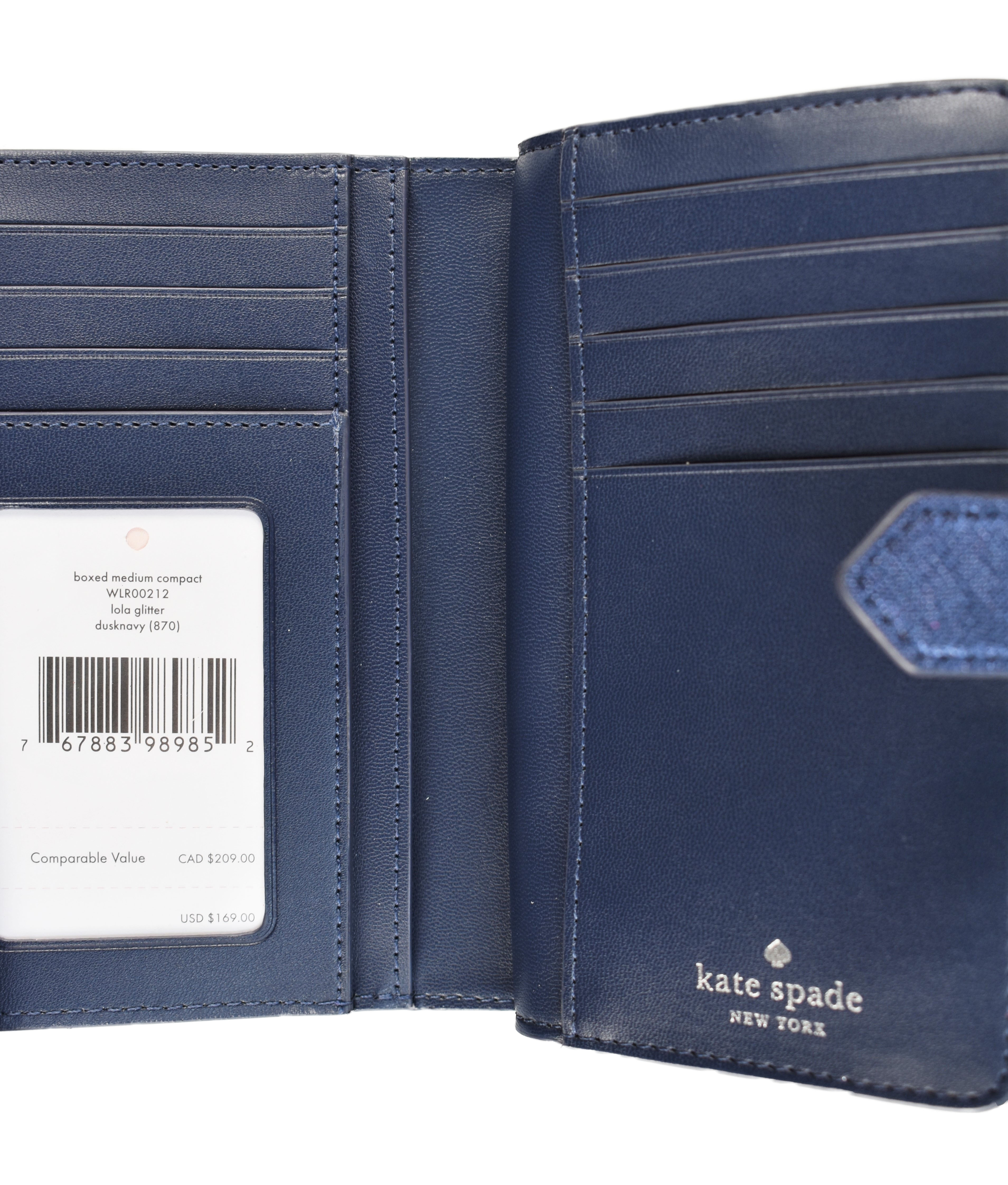 Kate Spade New York Lola Glitter Dusk Navy Boxed Medium Compact Wallet with Gift Box $169 - Walmart.com