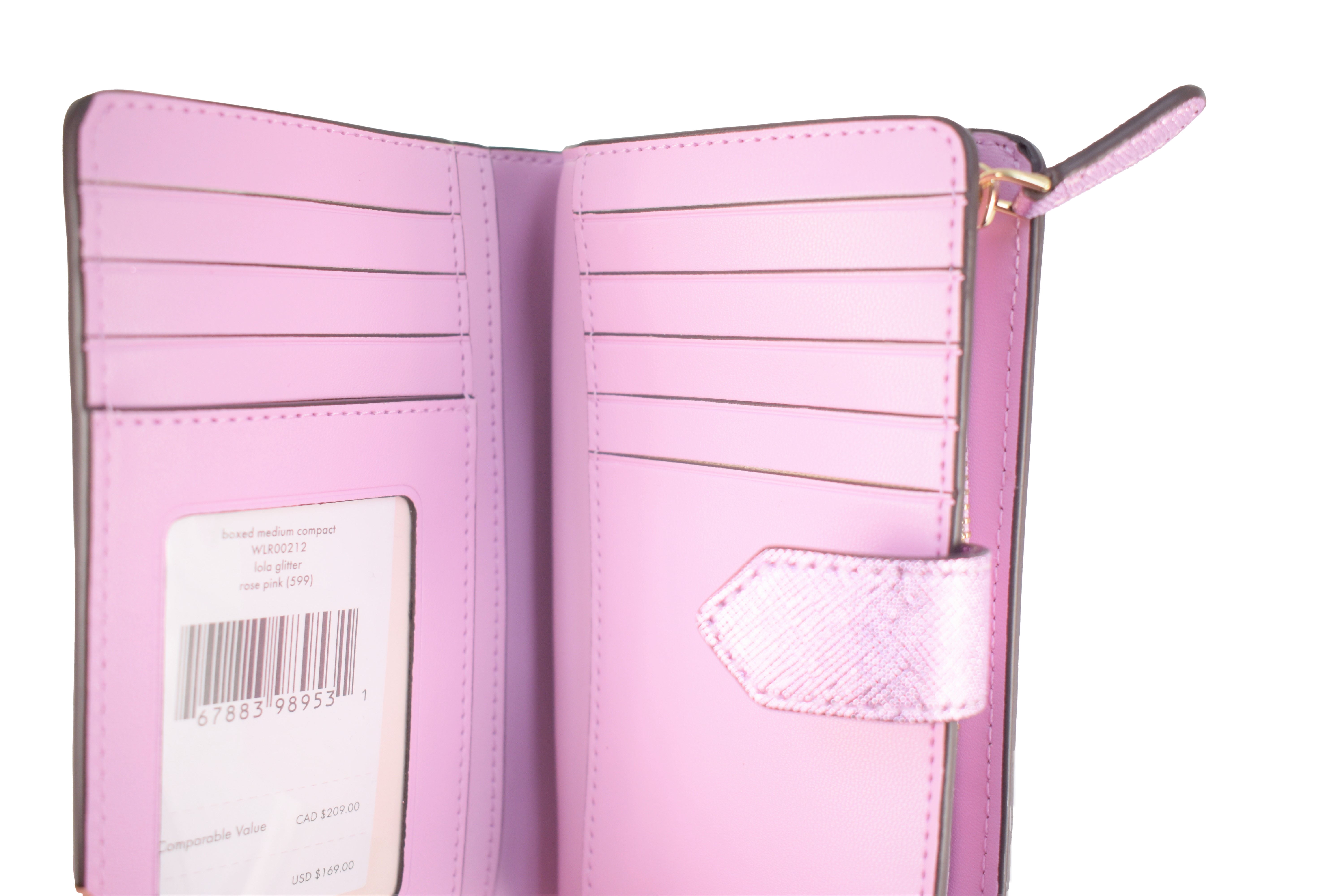Kate Spade New York Lola Glitter Boxed Medium Compact Wallet Lola Glitter Rose Pink with Gift Box $169 - Walmart.com