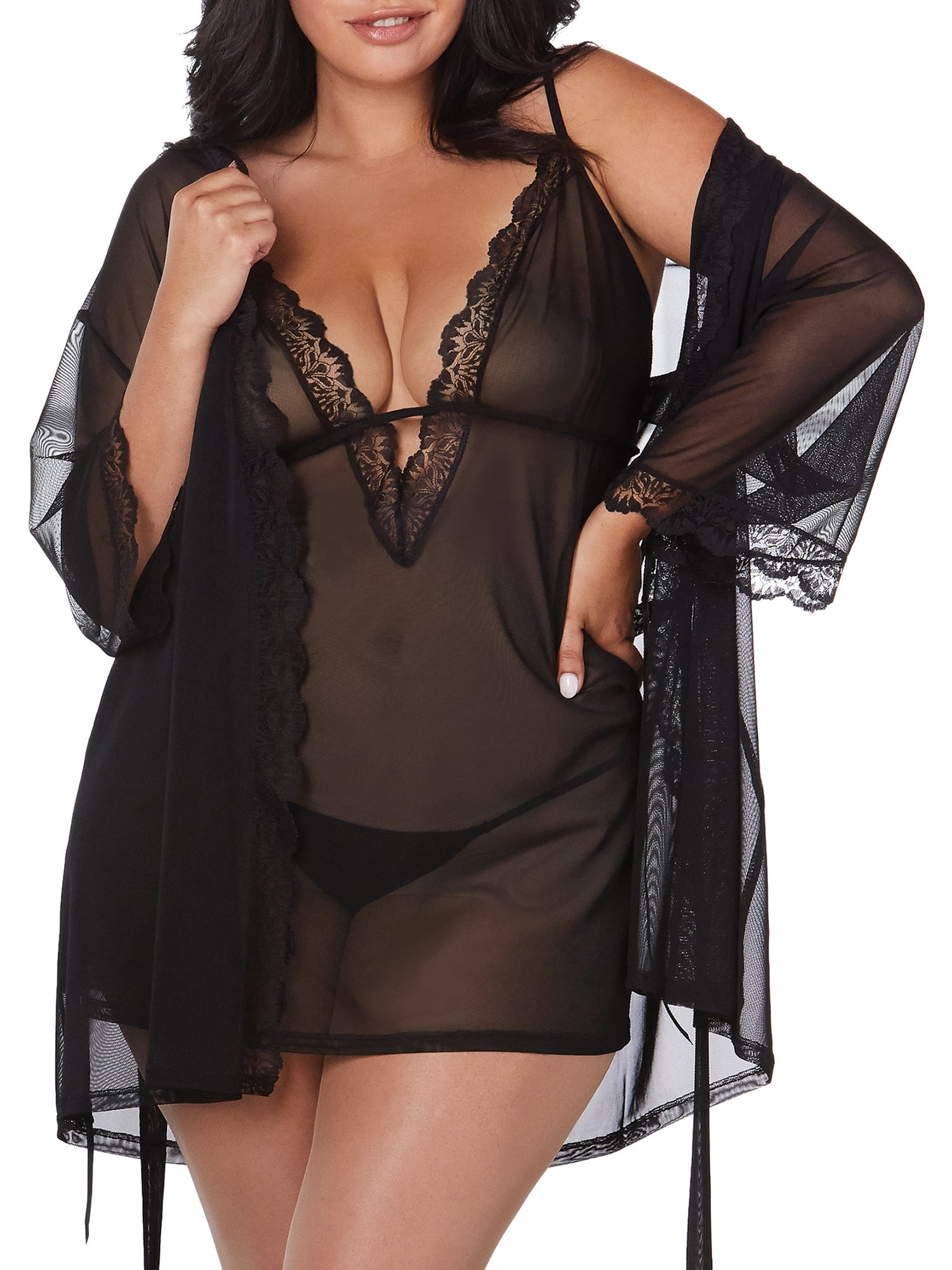 Plus Size Sheer Babydoll \u0026 Robe Set