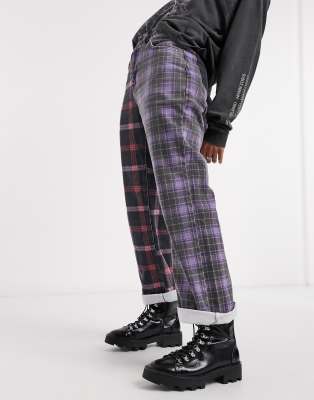 Banned Apparel Half Black Half Purple Check Skinny Jeans | Attitude Clothing