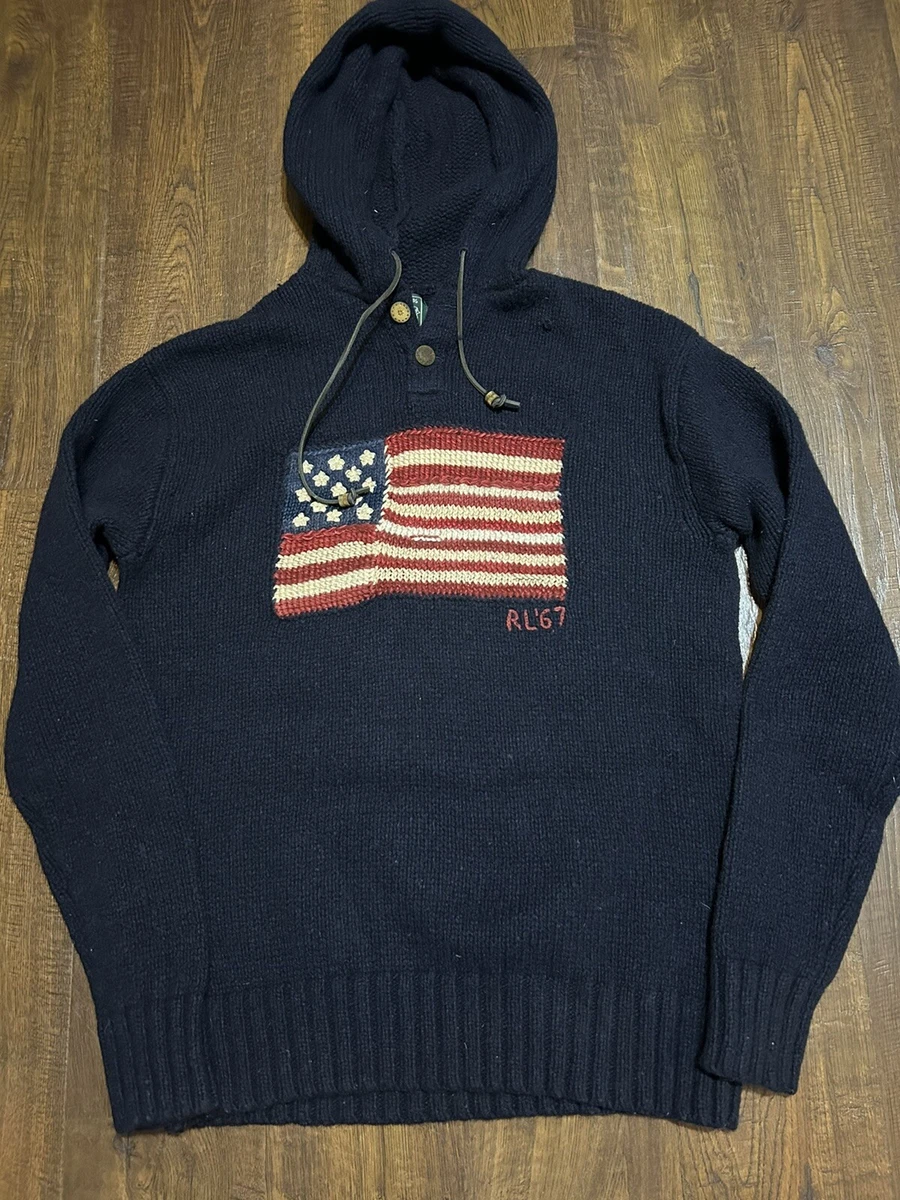 Polo Ralph Lauren Knit American Flag Hoodie Sweater Size M | eBay
