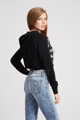Long-Sleeve Graphic Cropped Hoodie | GUESS.com