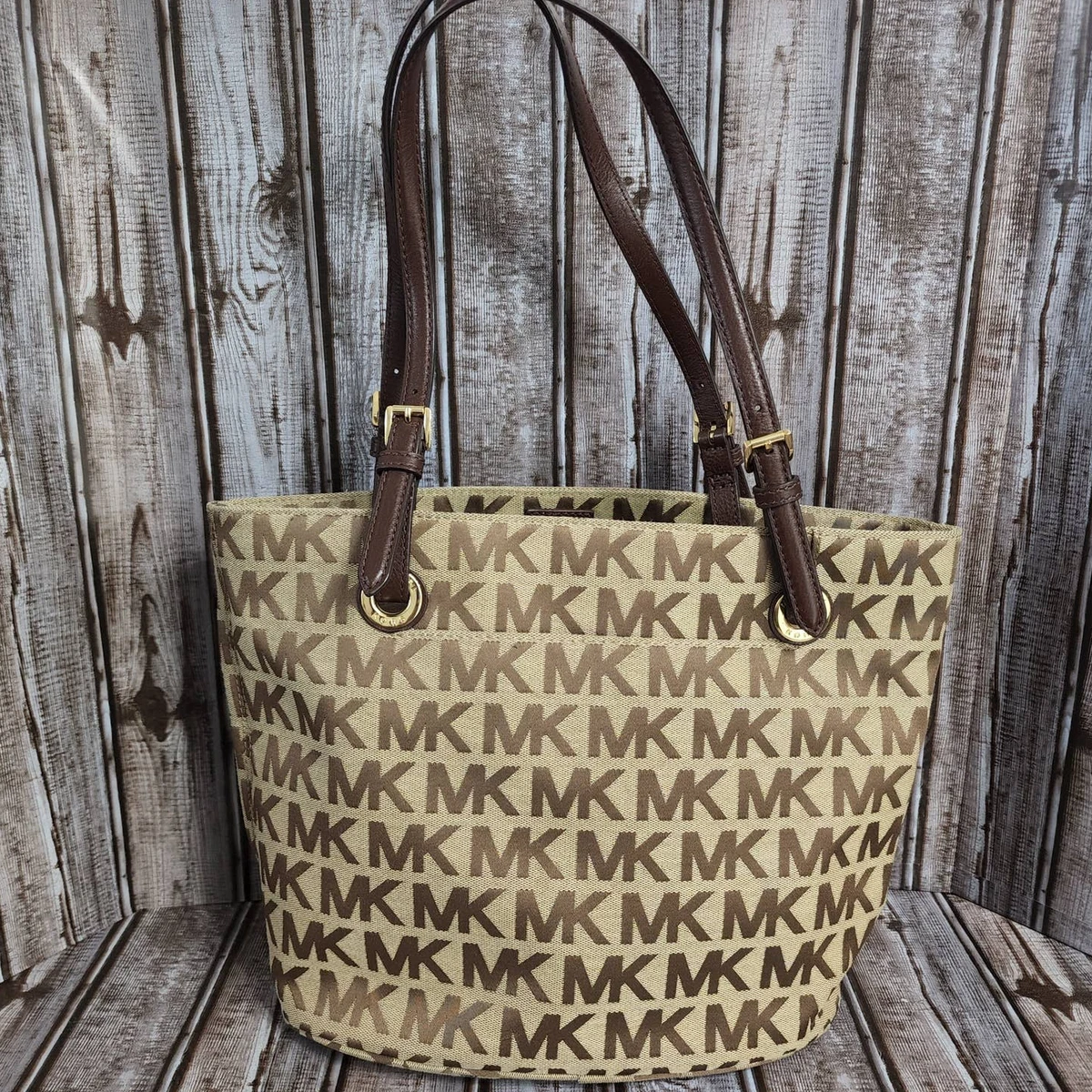 Michael Kors Signature Canvas Tote Tan and Brown MK Signature Pattern Purse | eBay