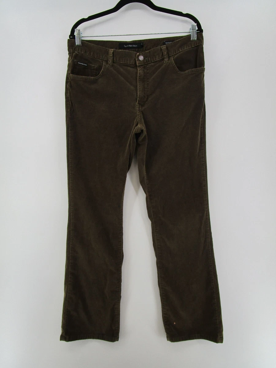 Calvin Klein Womens 12 Straight Leg Corduroy Pants Dark Olive | eBay