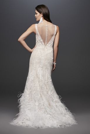 Lace Mermaid Wedding Dress with Feather