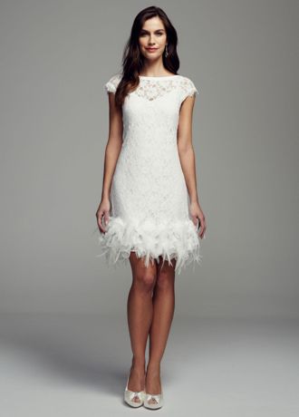 Short Lace Dress with Feather Trim