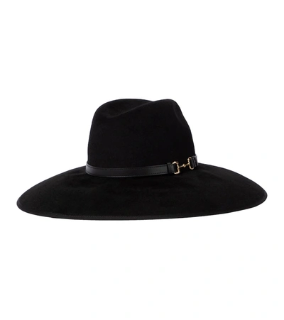 Gucci Black Felt Wide Brim Horsebit Panama Hat | ModeSens