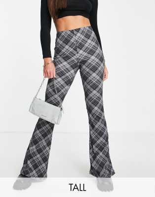 Tall Black Check Flared Trousers | New Look
