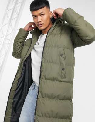 Missguided Longline Padded Jacket In Khaki, $58 | Asos | Lookastic