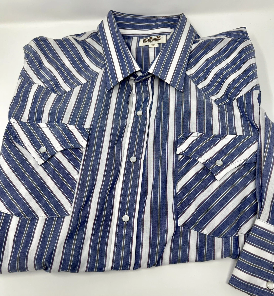 Ely Cattleman Pearl Snap Shirt Mens 2XL Blue White Striped Long Sleeve Western | eBay